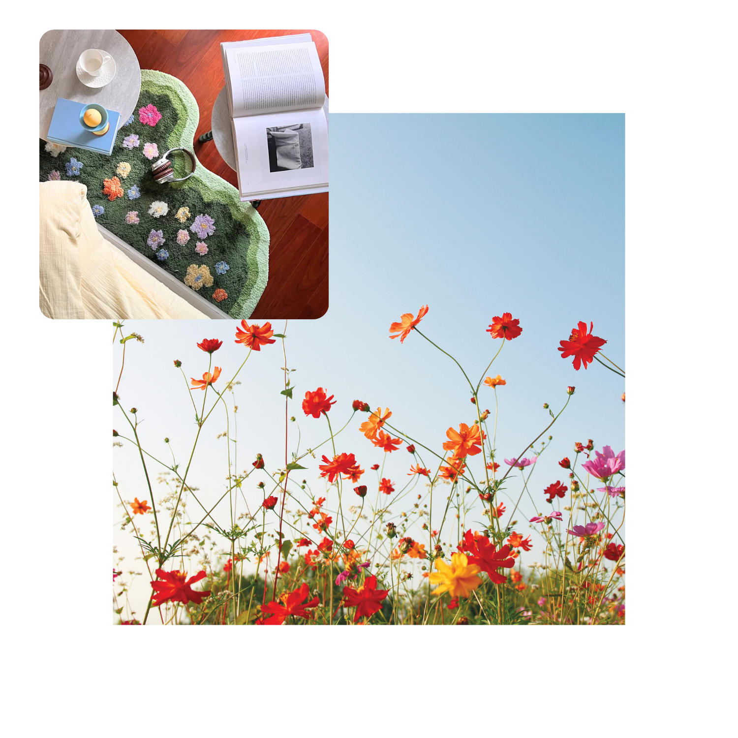 Our 'Flower Garden Rug' bursts with the vibrant colors and delicate details of a summer garden in full bloom. Made to add a touch of warmth and whimsy to your space, each rug invites the joyful spirit of a summer garden into your home.
