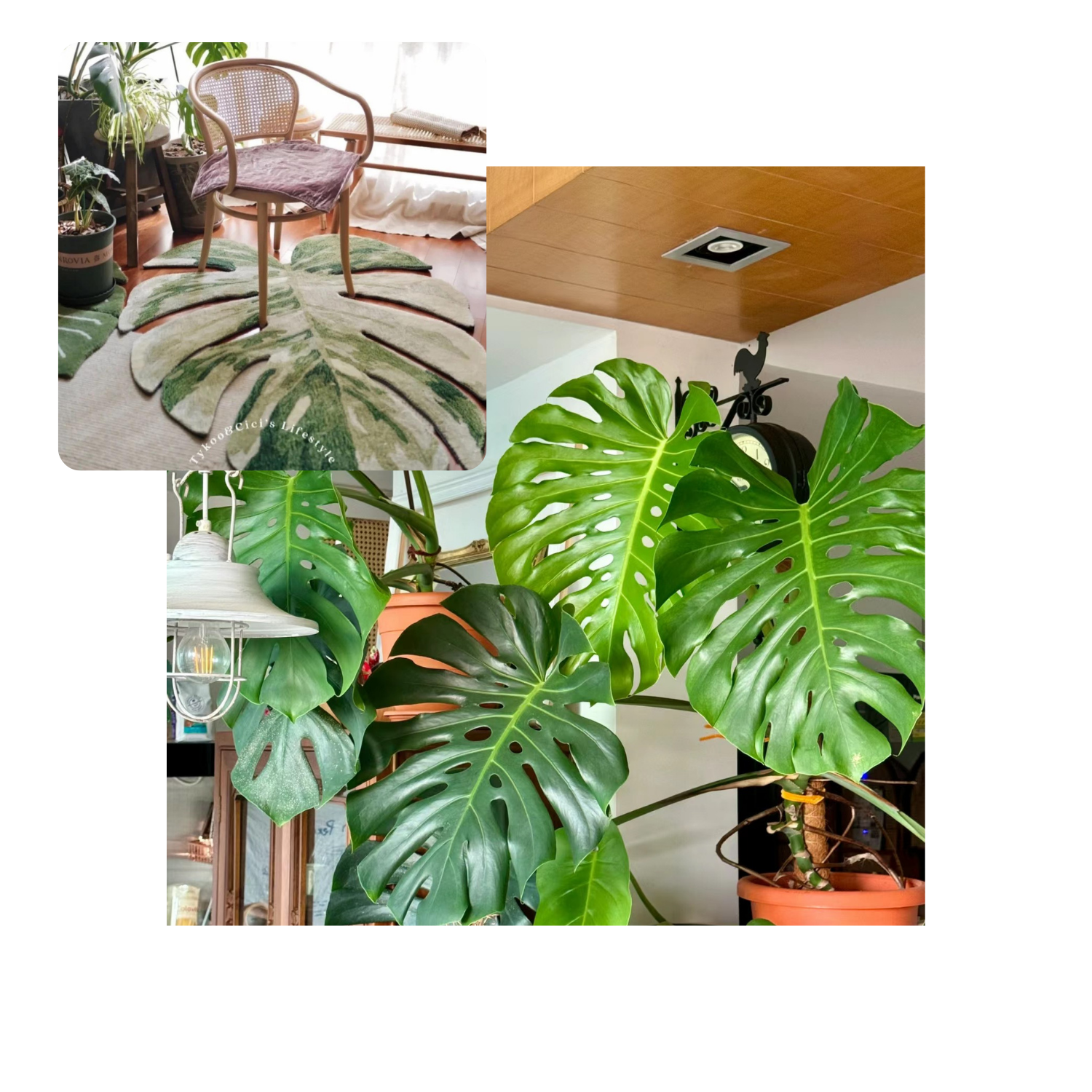 Ground your space with leaf shaped inspired by the fields and monstera plants.